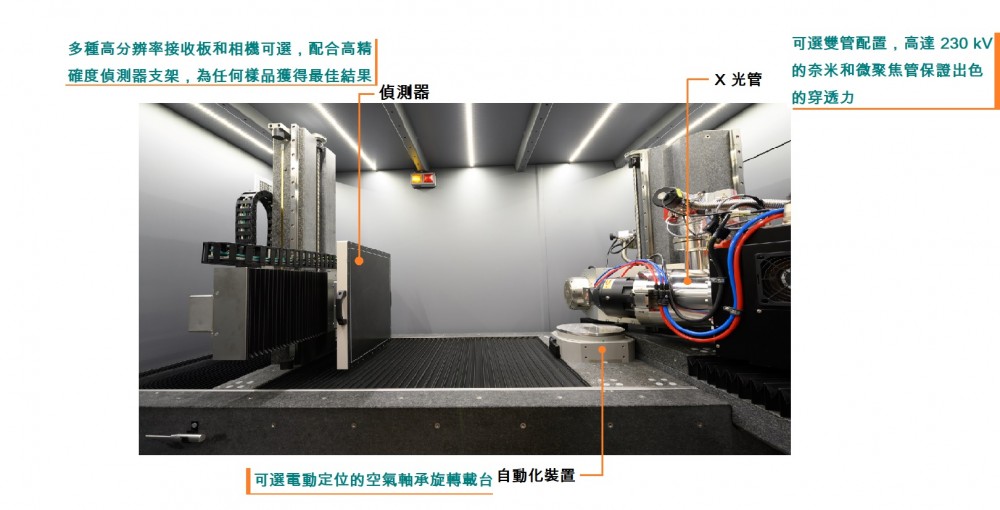 結合高功率和高分辨率的模組設計,多達2個 X 射線管,包括奈米 160kV 和微米 230kV。低至 0.4μm 出色分辨率,單管或雙管配置。