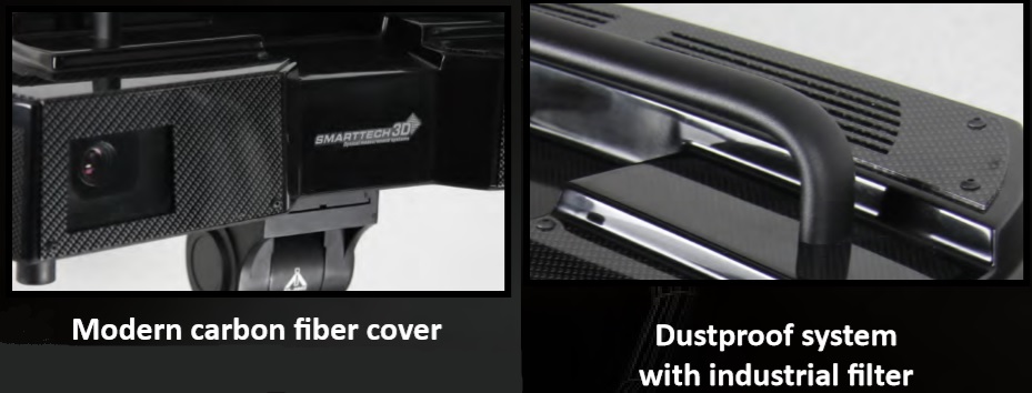 MICRON3D green 掃描儀的準確與耐用性具有通過 SMARTTECH 專家和獨立單位進行現場測試、高級測量測試之認證,設計宗旨在於提供使用者移動式的可靠工具。掃描儀外殼和支撐結構皆由能夠耐受環境溫度變化的現代碳纖維製成,內部使用的特殊減震系統除了可抑制振動,可更換的防塵過濾器亦使設備內部易於清潔。所有這些特性都使 MICRON3D green 掃描儀變得更加可靠,無論是在經特殊改裝的房間內和室外都能成功使用。