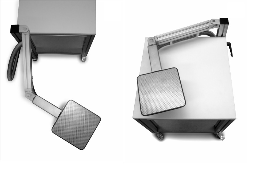 工作檯面由帶有孔洞的夾層結構組成,堅固且耐溶劑,抽吸管的抽吸面積為300x300mm,沿著導軌移動到檯面上任何地方進行抽氣,在有限的範圍內實現最佳的抽吸力